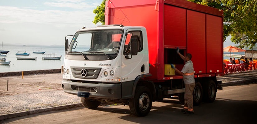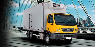 O ótimo rendimento do trem de força desses caminhões permite ao Accelo cumprir seu trabalho com resistência, durabilidade e toda a confiabilidade, características da marca Mercedes-Benz.